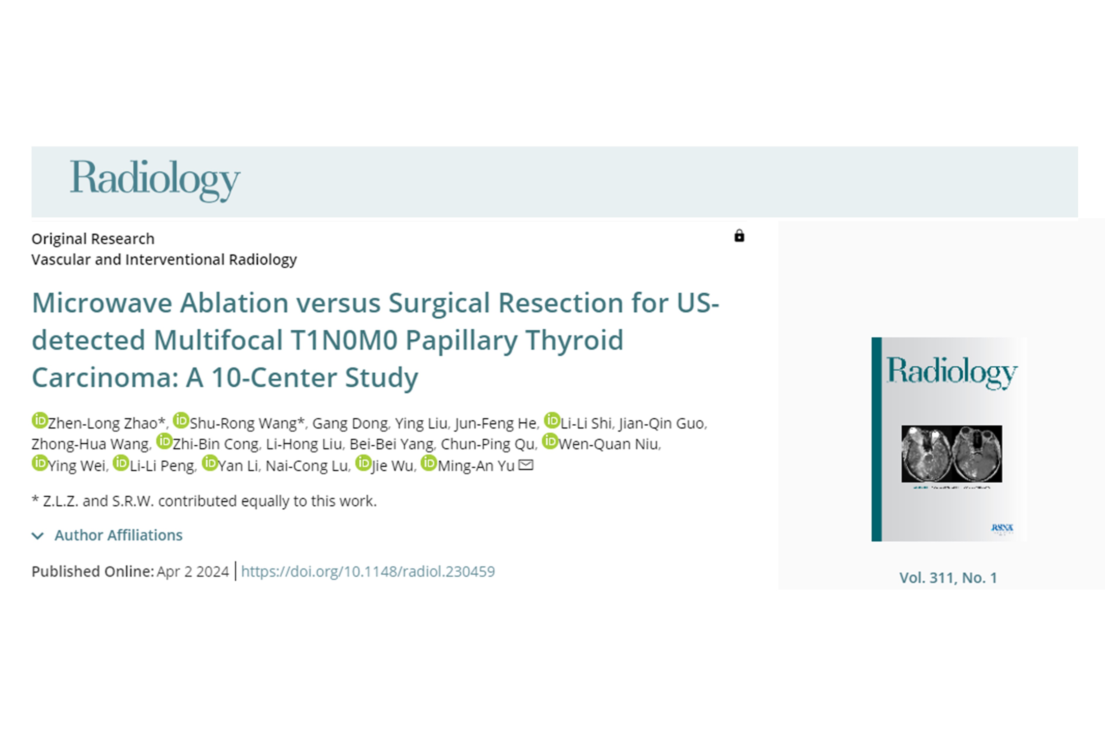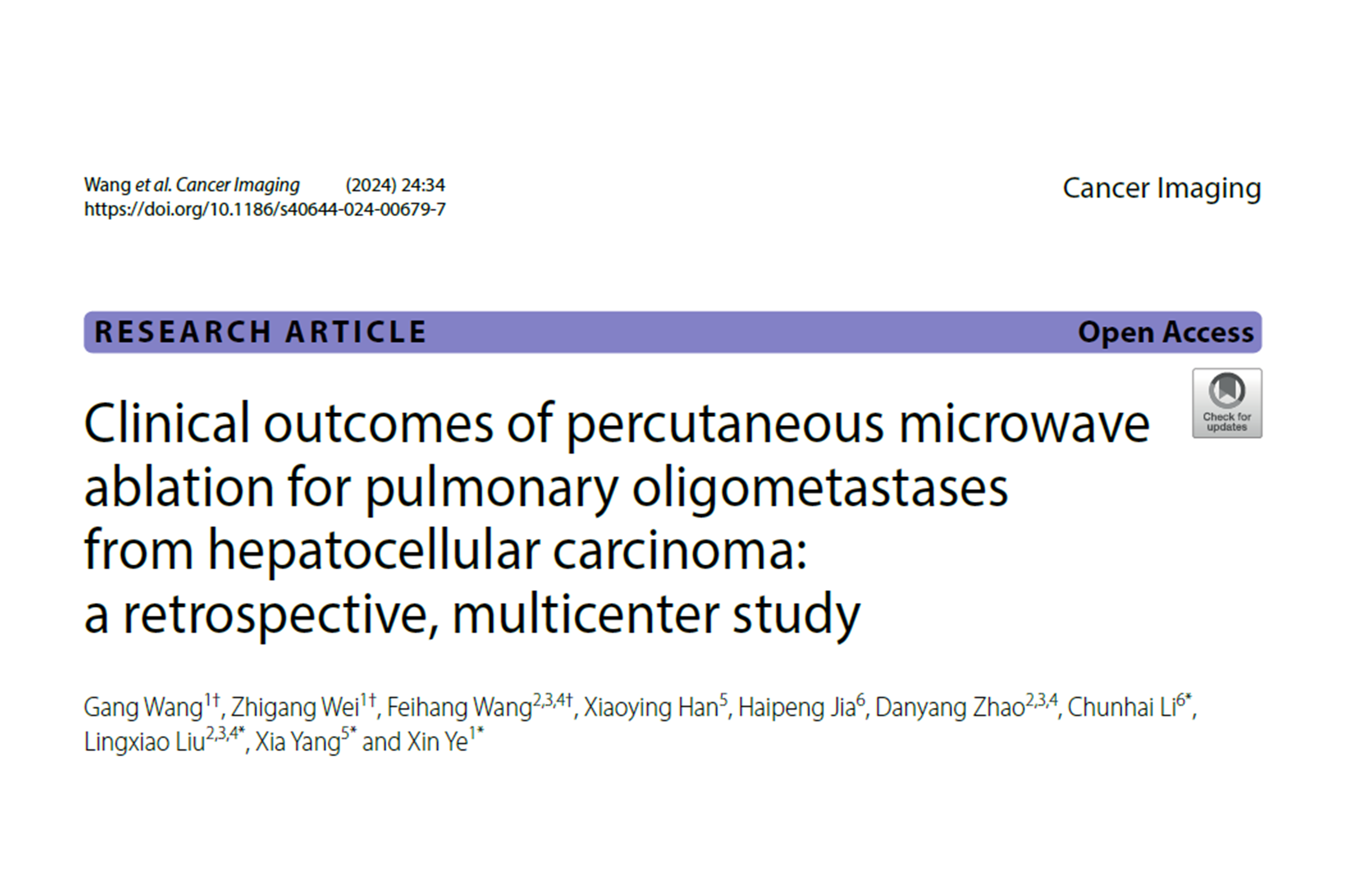 查看詳情由葉欣等教授組織的一項“微波消融治療肝癌肺部寡轉(zhuǎn)移多中心回顧性研究”已正式發(fā)表,為我國在國際上領(lǐng)跑肝癌領(lǐng)域的治療提供了有力的數(shù)據(jù)。