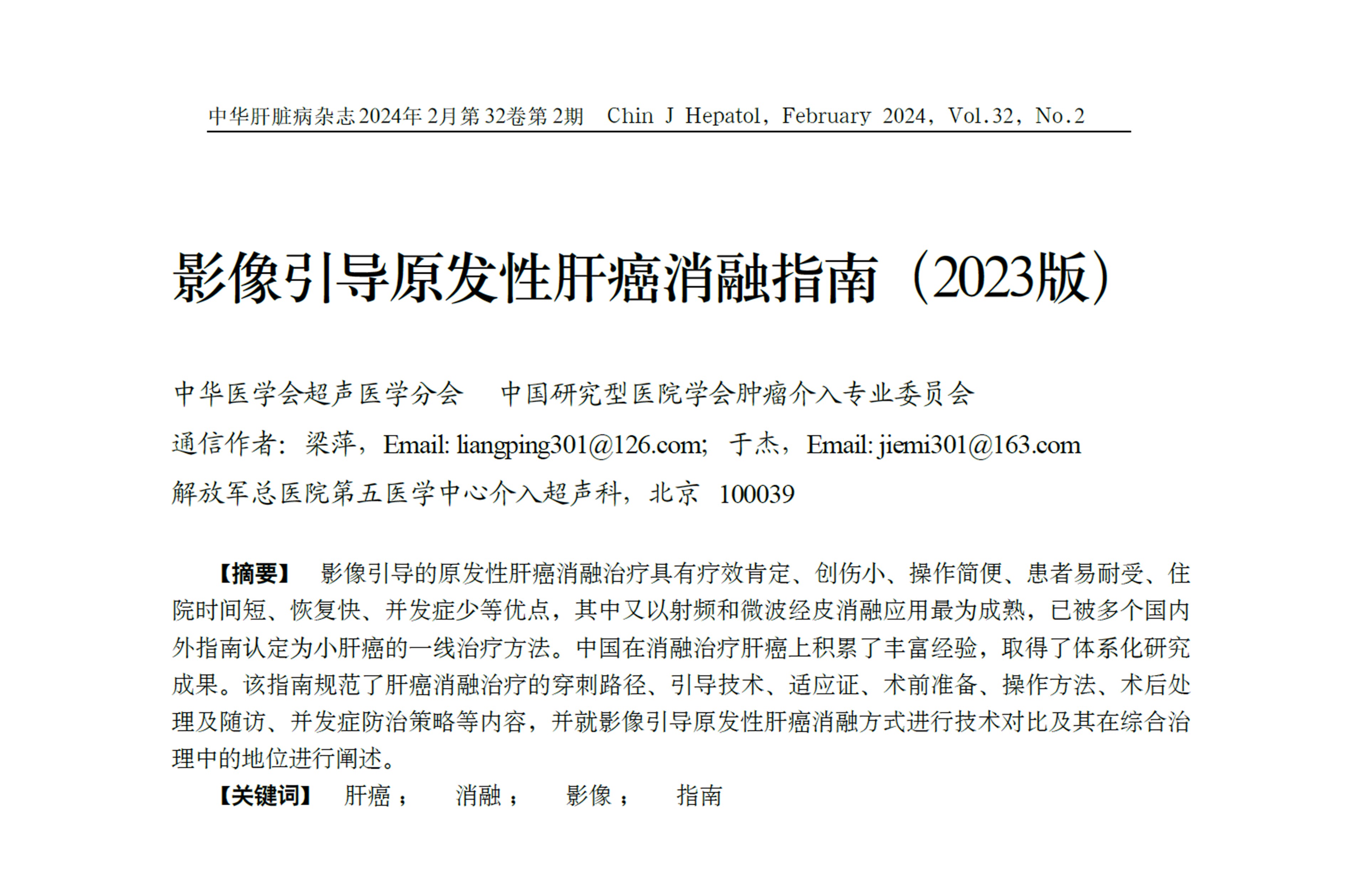 查看詳情該指南規(guī)范了肝癌消融治療的穿刺路徑、引導(dǎo)技術(shù)、適應(yīng)證、術(shù)前準(zhǔn)備、操作方法、術(shù)后處理及隨訪、并發(fā)癥防治策略等內(nèi)容,并就影像引導(dǎo)原發(fā)性肝癌消融方式進(jìn)行技術(shù)對比及其在綜合治理中的地位進(jìn)行闡述。