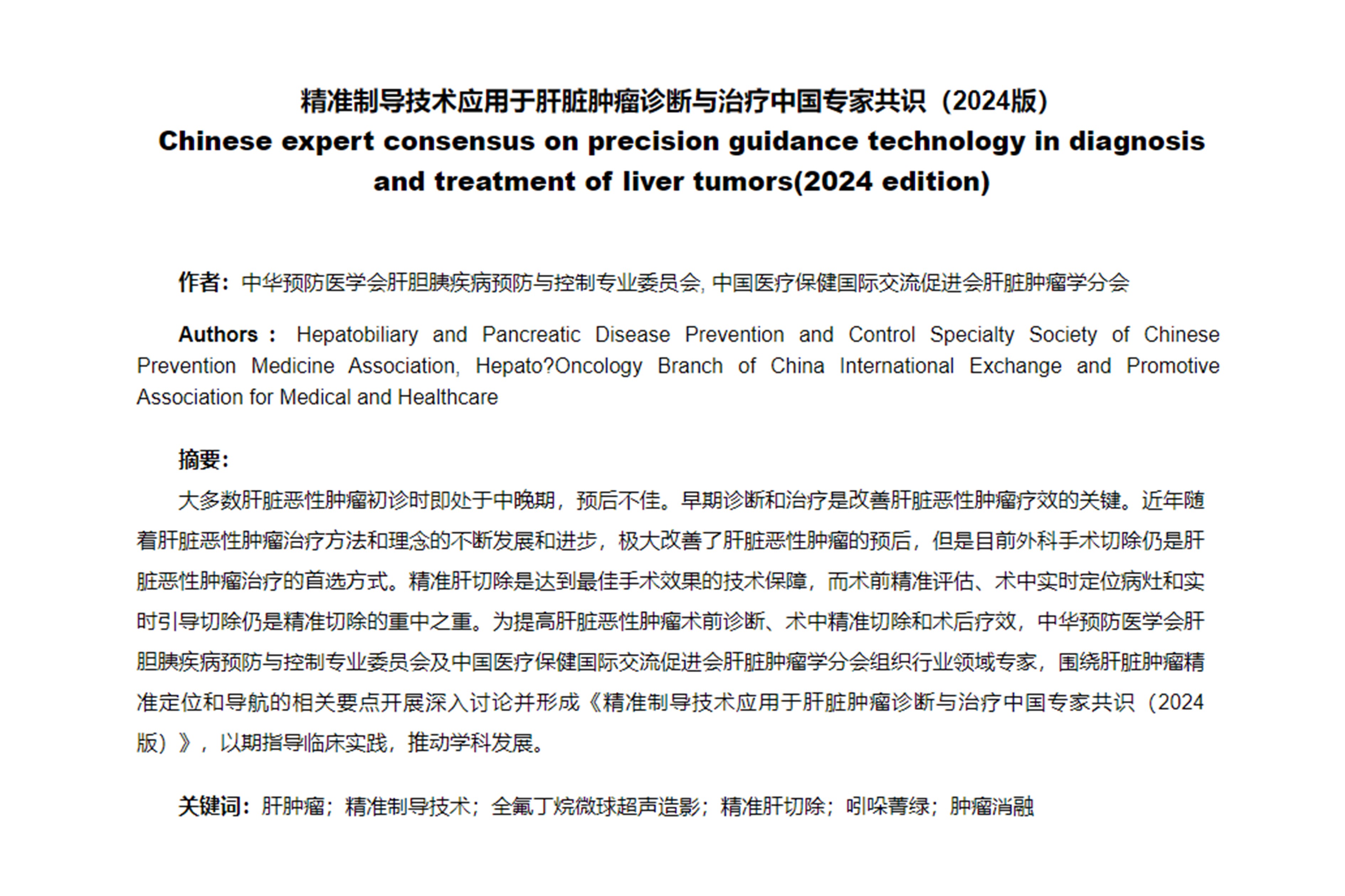 為提高肝臟惡性腫瘤術(shù)前診斷、術(shù)中精準(zhǔn)切除和術(shù)后療效,圍繞肝臟腫瘤精準(zhǔn)定位和導(dǎo)航的相關(guān)要點開展深入討論并形成《精準(zhǔn)制導(dǎo)技術(shù)應(yīng)用于肝臟腫瘤診斷與治療中國專家共識(2024版)》,以期指導(dǎo)臨床實踐,推動學(xué)科發(fā)展...
