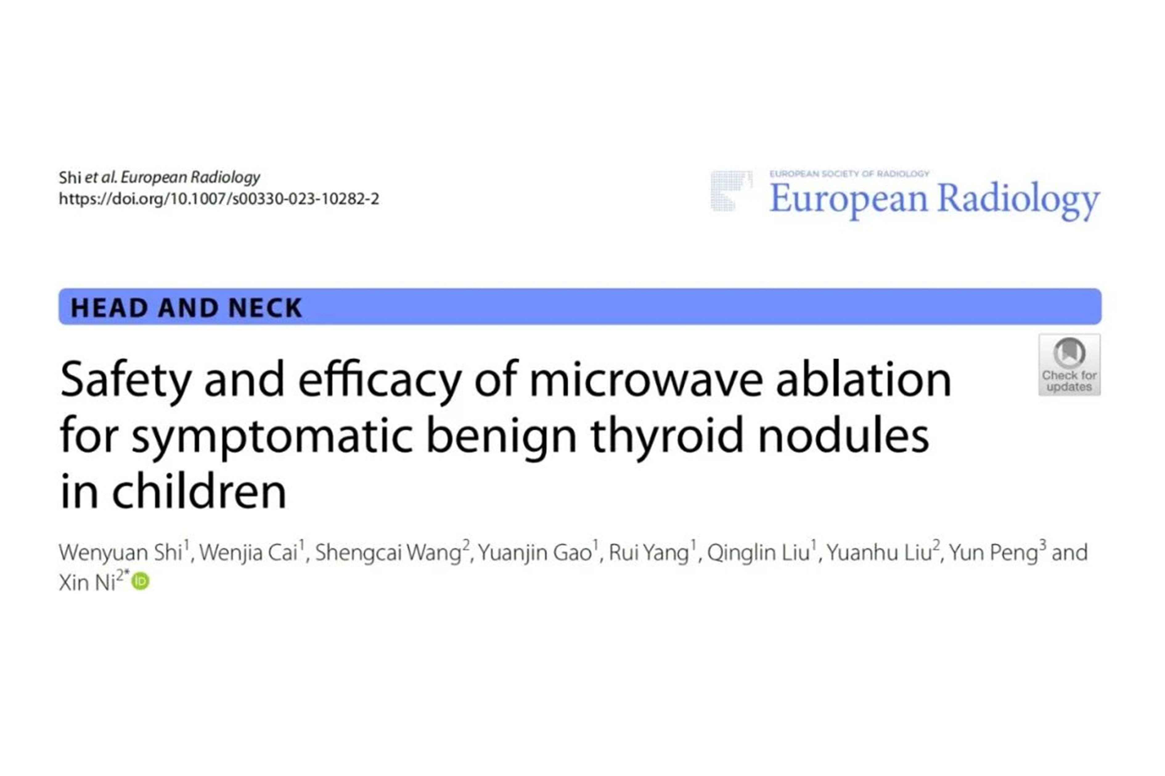 查看詳情石文媛主任團(tuán)隊(duì)學(xué)術(shù)成果在《European Radiology》發(fā)表,研究結(jié)果示微波消融可微創(chuàng)、安全有效的治療兒童良性甲狀腺結(jié)節(jié)。 首都醫(yī)科大學(xué)附屬北京兒童醫(yī)院介入醫(yī)學(xué)科石文媛主任團(tuán)隊(duì)近日在放射學(xué)權(quán)威雜志《European...
